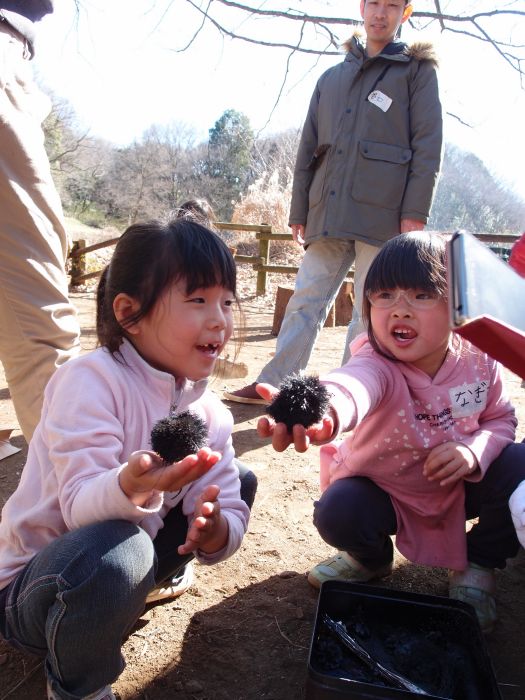 休憩のあと、先ほどひろった材料で、くろすけ炭作りです。