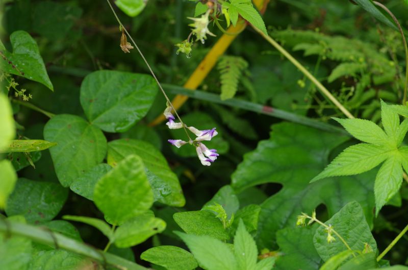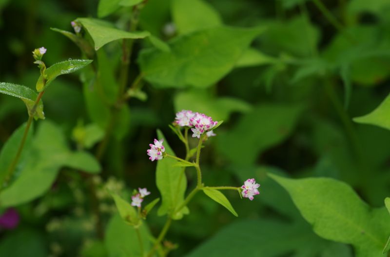 ツリフネソウの他には、ミゾソバやユウガギク、ヤブマメなどが花を咲かせています。