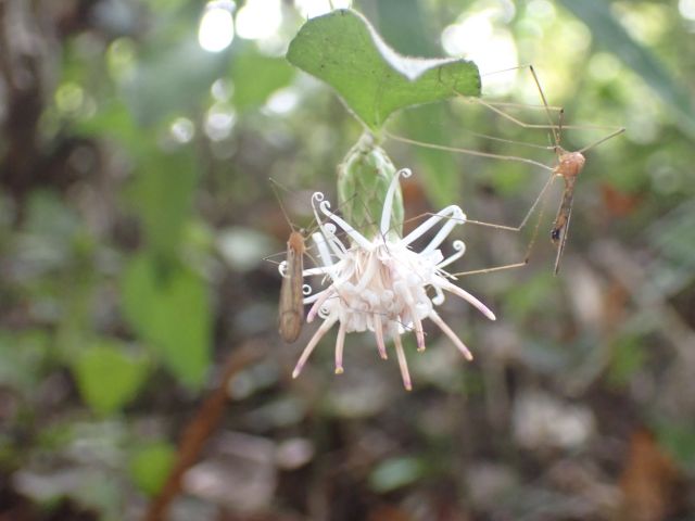 コウヤボウキの花の周りには蜜を吸いに来ているのかガガンボの仲間がいて、