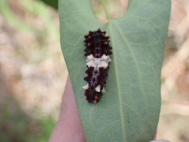 特に、ジャコウアゲハの幼虫の姿があるのにも驚きました。これから蛹になって冬を越すために、しっかりと栄養を蓄えています。