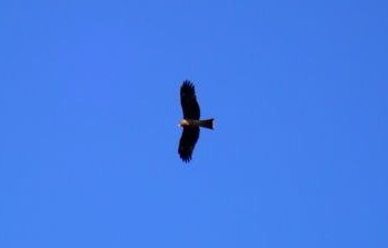 ふと、木々を見ながら散策してみると、トビが数羽の群れを作って近くまで旋回してきました。