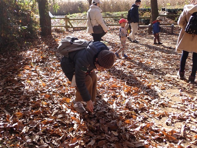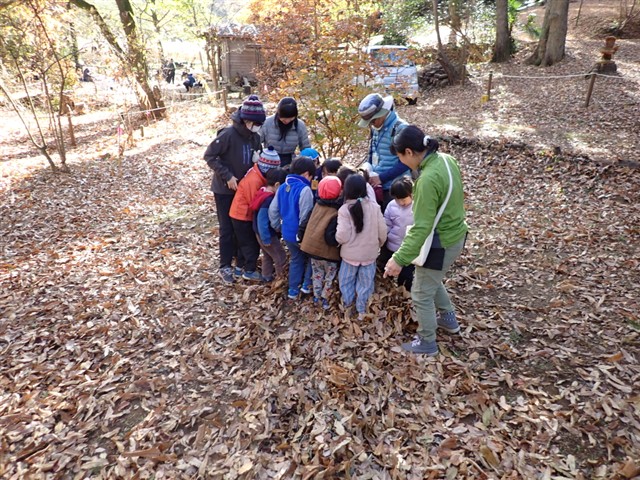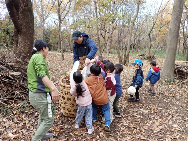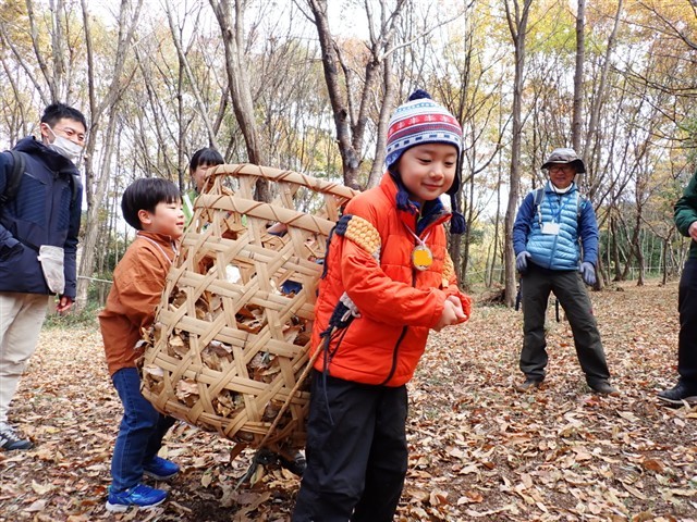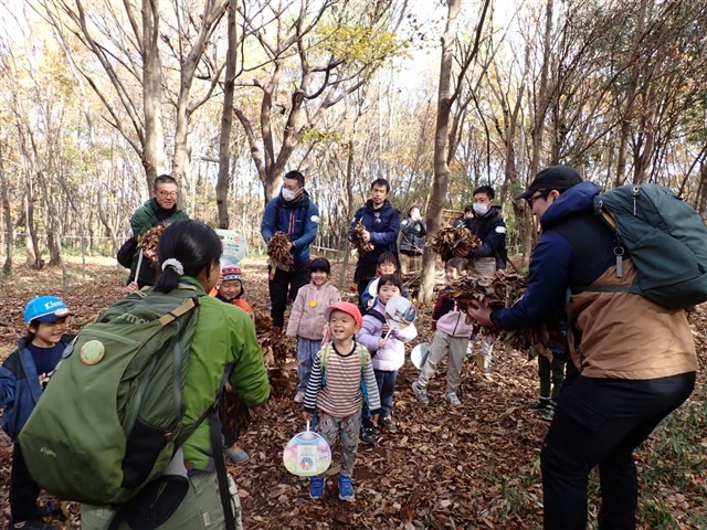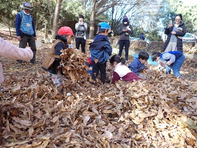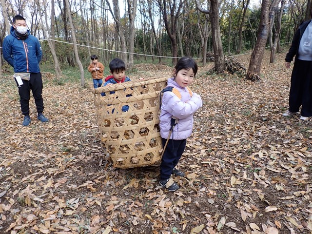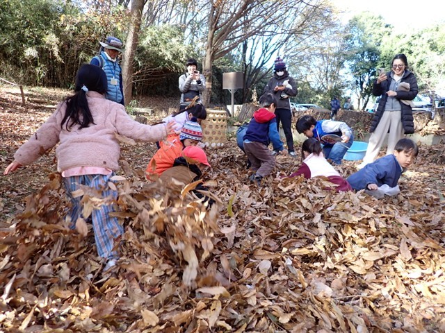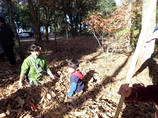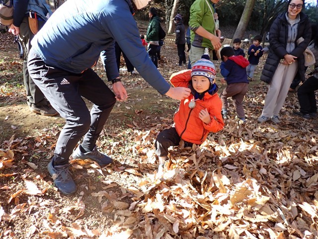 旬の自然を楽しむイベントの「里山ようちえん」なので、今日は落ち葉遊びがメインでした。