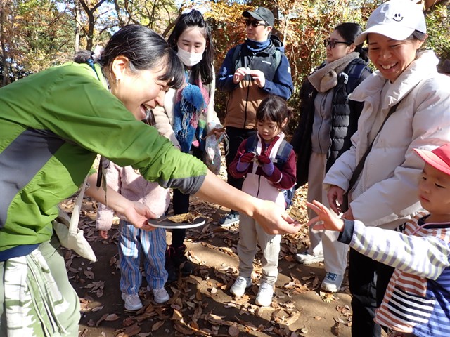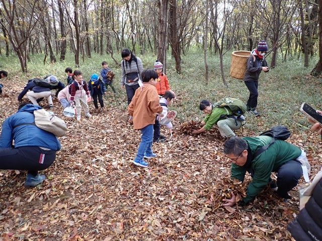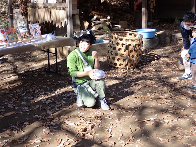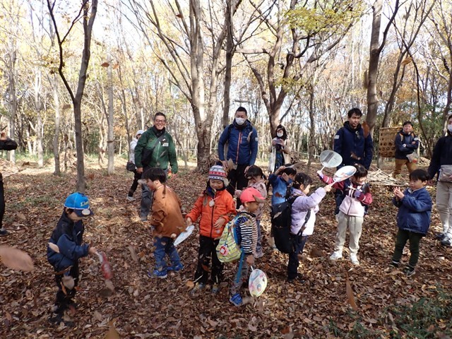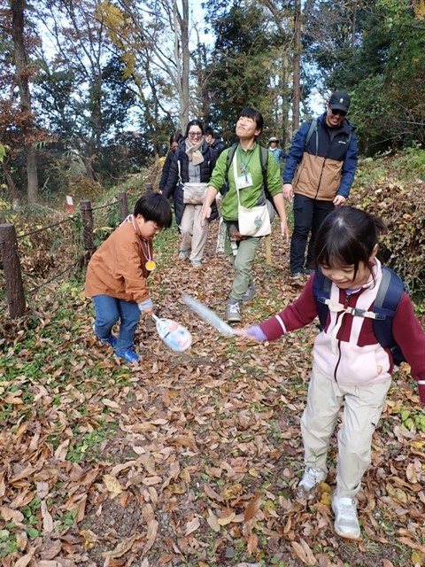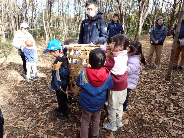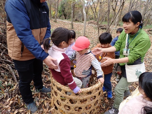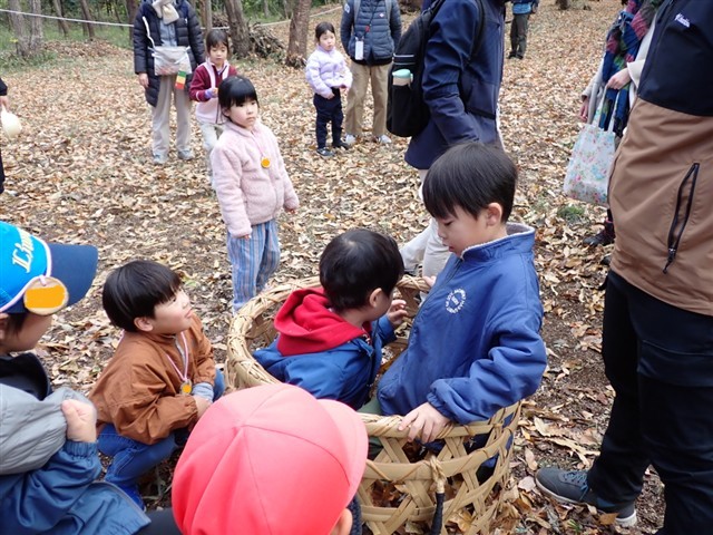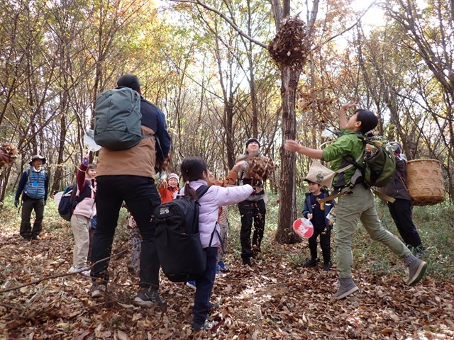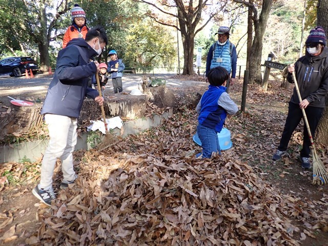 旬の自然を楽しむイベントの「里山ようちえん」なので、今日は落ち葉遊びがメインでした。