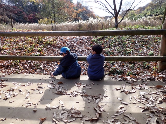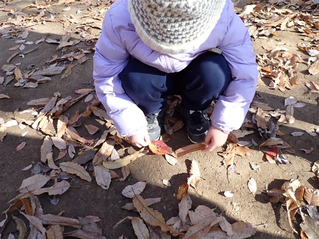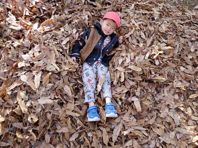 帰り道も落ち葉がたくさんなので、遊びながら…です。