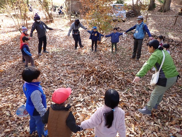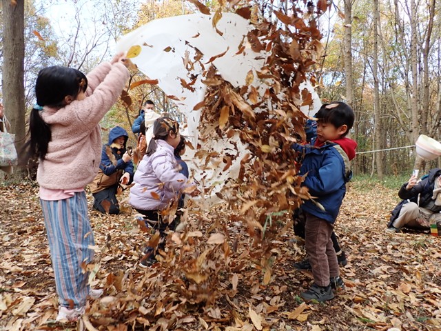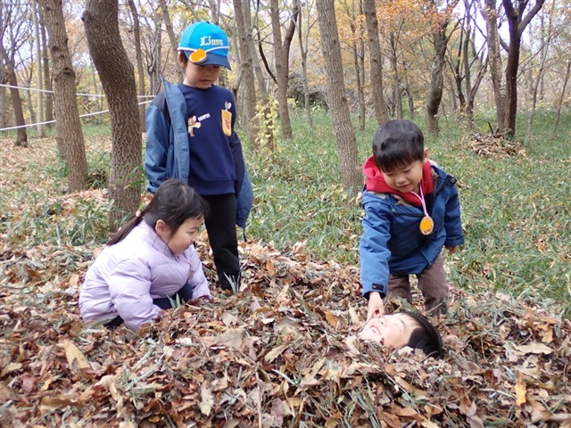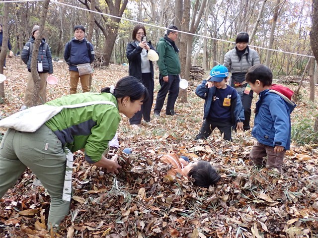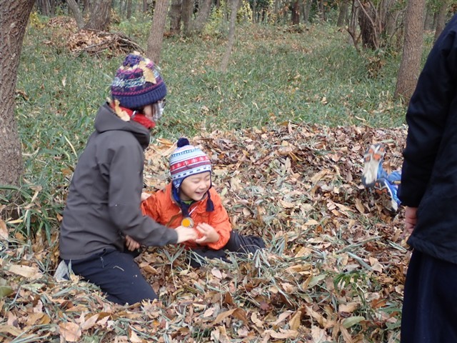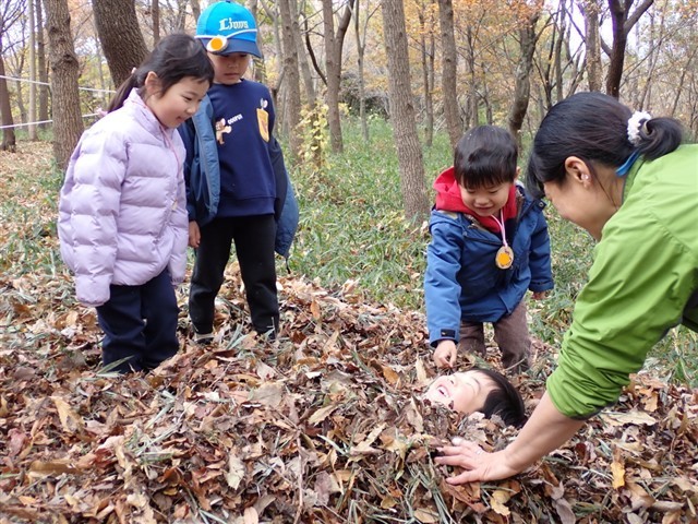 落ち葉の森では、みんなでいろいろな遊びで大盛り上がり♪