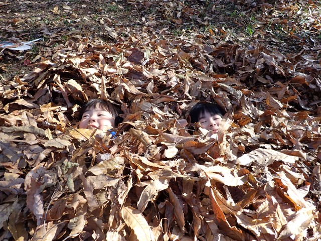 落ち葉って、楽しいね♪ 落ち葉ってあたたかいね♪ みんなで遊ぶと楽しいね♪