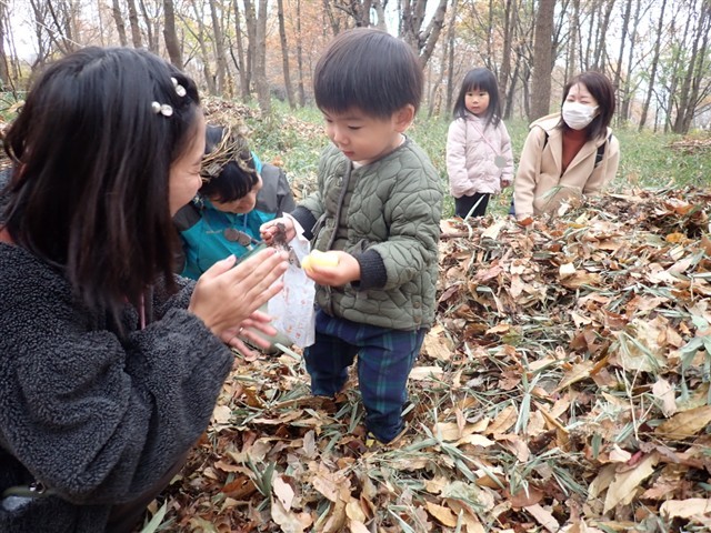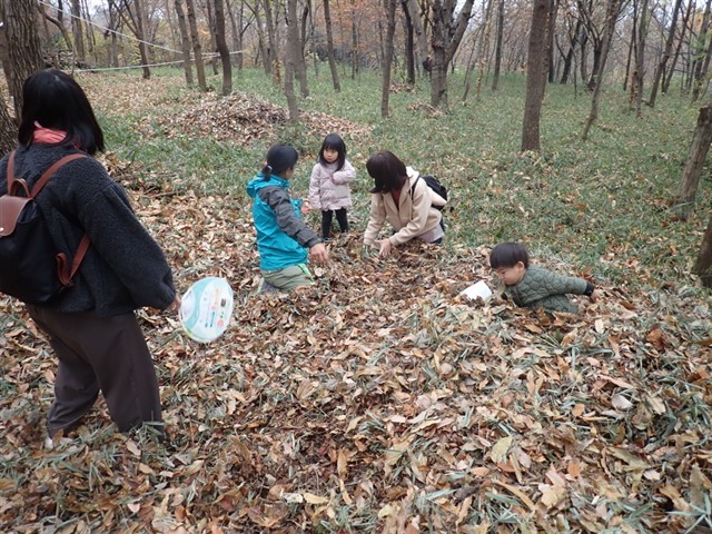外気温が低いこともあり、落ち葉の中がとっても暖かったのにびっくり!