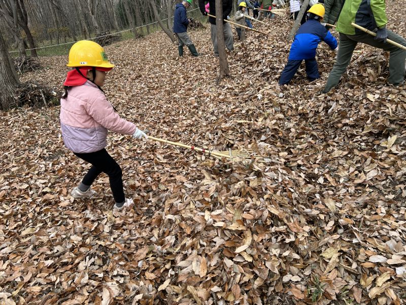 先週に引き続き今週も里山体験教室「落ち葉かきとごほうびの焼き芋つくり」のイベントを行いました。