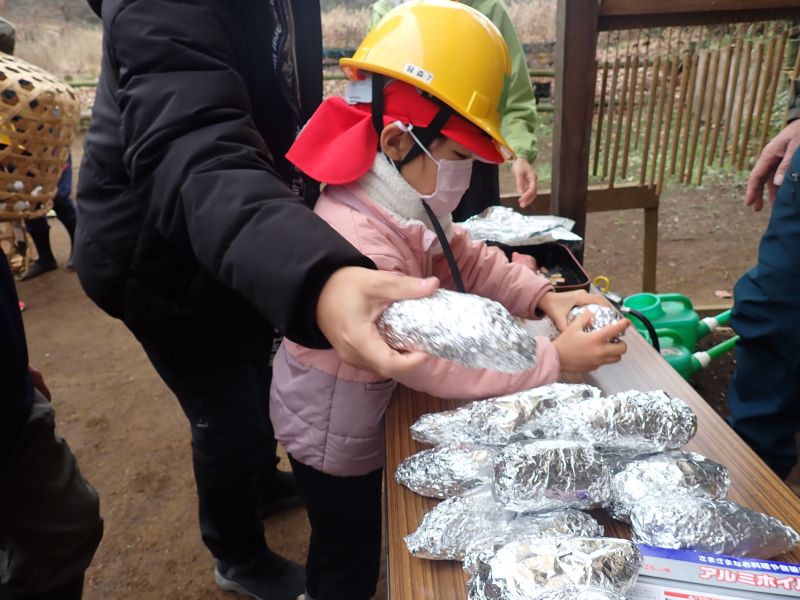 最後は落ち葉かきの間焼いてもらっていた、焼き芋を食べて終わりました。