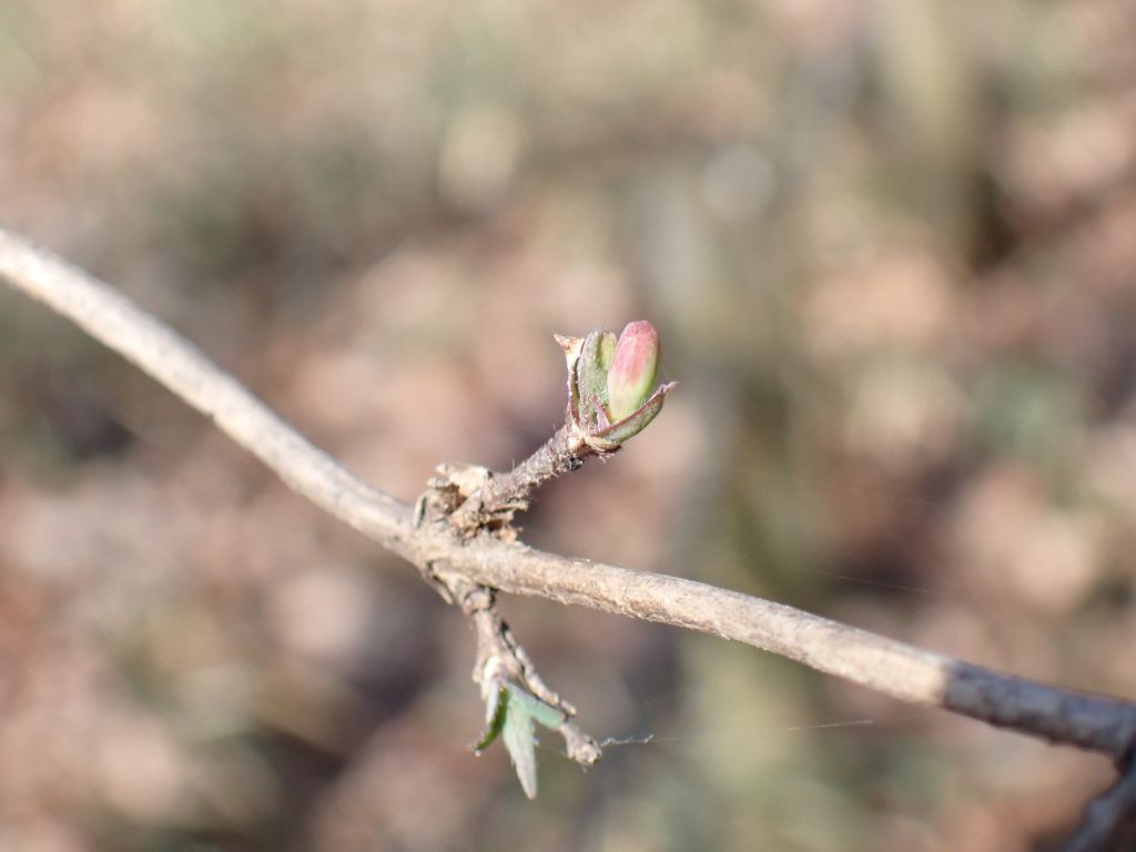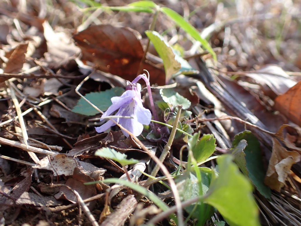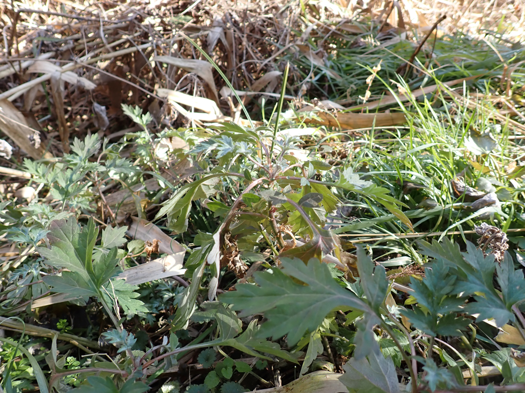 茎を伸ばしたヨモギ、もうすぐ咲きそうなウグイスカグラ、せっかちすぎたタチツボスミレといったあたり。