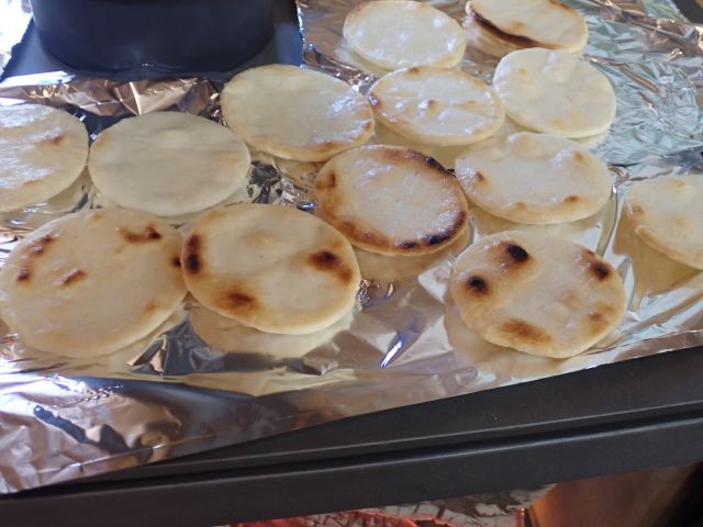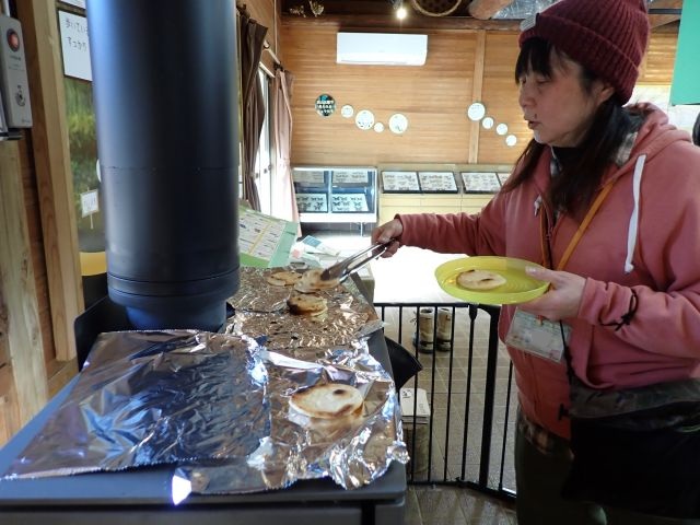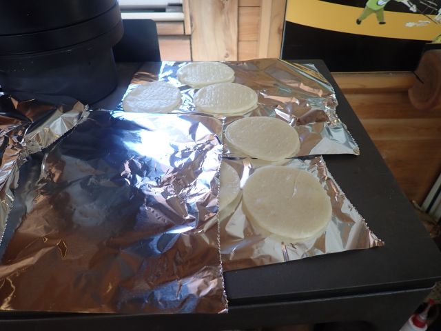 そうなんです!たき火でできなかったおせんべいを薪ストーブで焼いてみました。