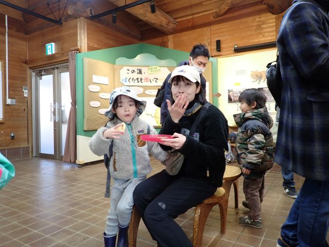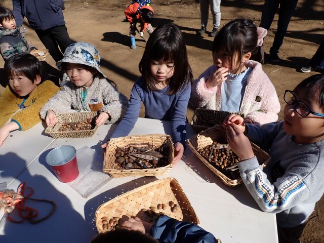 最後にみんなから何が楽しかった聞きました→「木の実拾い」「池の氷」「豆まき」「全部!」