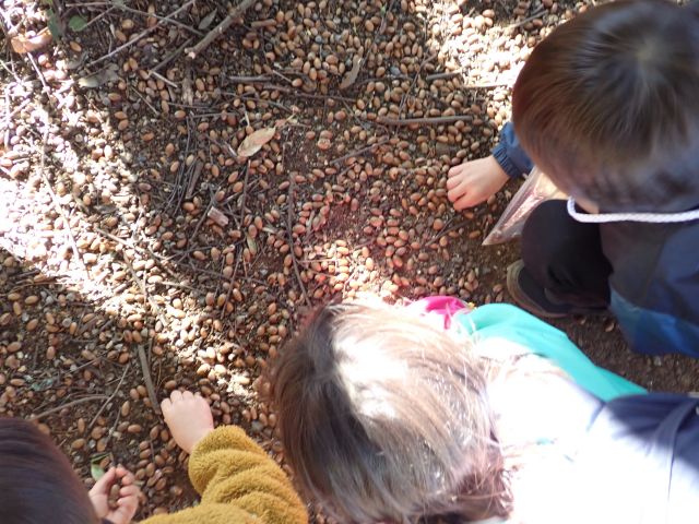 最後に、袋をいっぱいにするために、どんぐりコーナーでサービスタイム5分間!