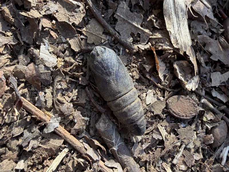 落ち葉の下には何か…あっ、これは!さなぎを見つけました!