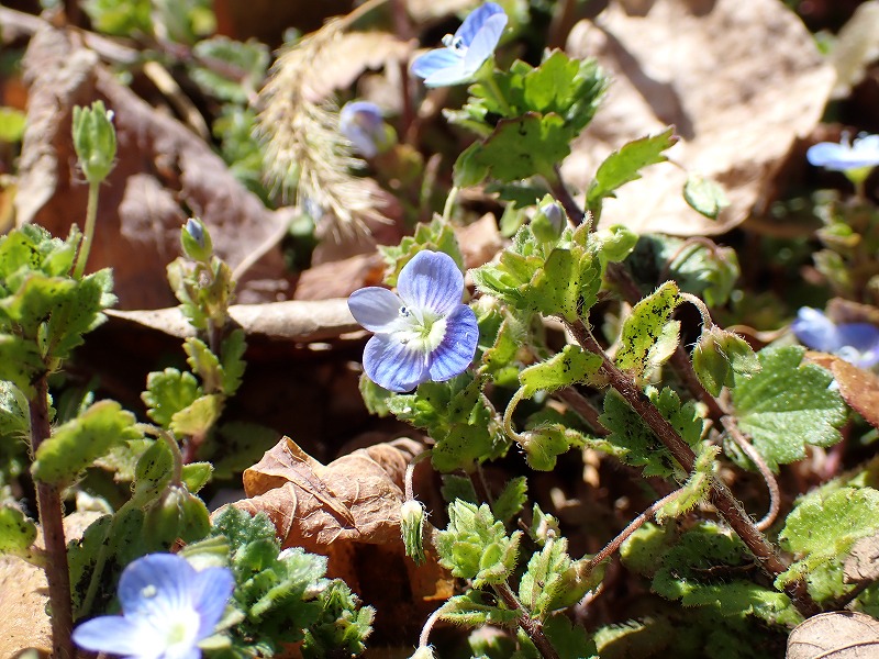 立春が過ぎ、足元にはオオイヌノフグリ、ミドリハコベ、ヒメオドリコソウなど小さな花がちらほら。